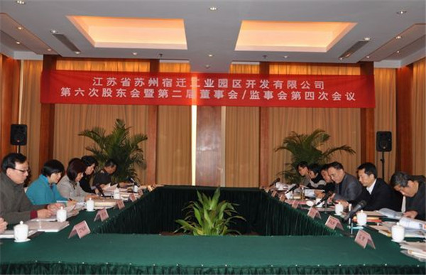2013年1月18日上午,江蘇省蘇州宿遷工業(yè)園區(qū)開發(fā)有限公司召開第六次股東會暨第二屆董事會/監(jiān)事會第四次會議。公司股東代表、董事、監(jiān)事參加了會議,公司經營管理班子成員列席了此次會議,會議由宿遷市副市長、蘇州宿遷工業(yè)園區(qū)黨工委書記、管委會主任、公司董事長顧玉坤同志主持。