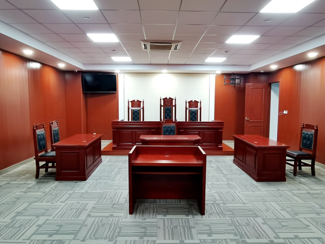 近年來(lái)園區(qū)勞資糾紛案件不斷增多,為提高化解效能,進(jìn)一步優(yōu)化法治營(yíng)商環(huán)境,經(jīng)管委會(huì)批準(zhǔn),將園區(qū)便民服務(wù)中心一樓培訓(xùn)室改造成“勞動(dòng)爭(zhēng)議仲裁庭”。項(xiàng)目設(shè)置審判席、仲裁席及旁聽(tīng)席等功能性區(qū)域。