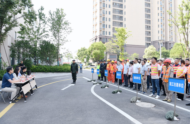 “城發(fā)公司2023年防汛應(yīng)急演練開始”! 6月15日上午,隨著指揮長一聲令下,城發(fā)公司2023年防汛演練正式拉開帷幕。本次演練由建發(fā)公司組織, 城發(fā)公司董事長、總經(jīng)理李蘭霞,城發(fā)公司總經(jīng)理助理張驥,建發(fā)公司副總經(jīng)理倪松、城發(fā)公司各部門負責(zé)人和兼職安全員及在建項目單位代表,建發(fā)公司市政物業(yè)部和物業(yè)管理部全體參加觀摩。
