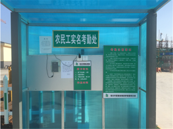 (圖為園區(qū)夢家園項(xiàng)目農(nóng)民工實(shí)名考勤處現(xiàn)場)