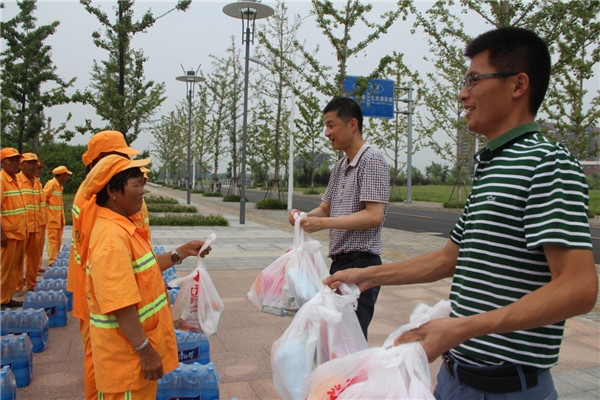 朱亞楠表示,園區(qū)環(huán)衛(wèi)工人頂著烈日,為恒大集團(tuán)等園區(qū)企業(yè)創(chuàng)造了整潔、優(yōu)美的城市環(huán)境,他代表恒大集團(tuán)宿遷項(xiàng)目全體人員向他們致以誠摯的敬意和謝意。許紹杰也對奮戰(zhàn)在一線的環(huán)衛(wèi)工人表示感謝和祝福,多次叮囑他們高溫作業(yè)要注意安全,勞逸結(jié)合。