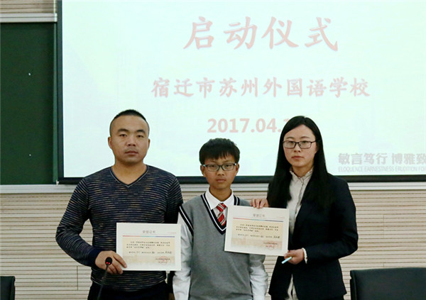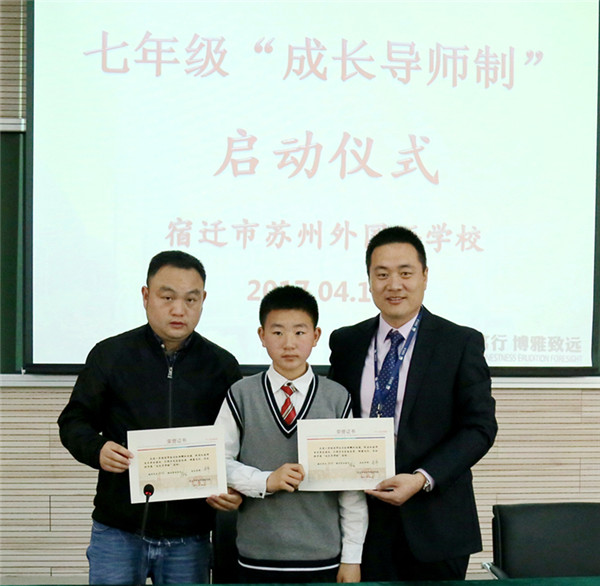 近日,宿遷市蘇州外國(guó)語(yǔ)學(xué)校七年級(jí)16位孩子和他們的家長(zhǎng)監(jiān)護(hù)人還有他們新認(rèn)的“干爹”“干媽”齊聚學(xué)校階梯教室,舉行隆重的簽約儀式。這些“干爹”“干媽”是學(xué)校給首批孩子們配的成長(zhǎng)導(dǎo)師,每位教師與一個(gè)孩子結(jié)對(duì),全方位關(guān)心孩子的成長(zhǎng),陪伴孩子們一起度過(guò)快樂(lè)而充實(shí)的初中生活,力求“個(gè)個(gè)進(jìn)步,人人成星”?!俺砷L(zhǎng)導(dǎo)師制”這種親情化、個(gè)性化、人本化的育人模式,是宿蘇外實(shí)施素質(zhì)教育,提升教育核心競(jìng)爭(zhēng)力的需要;是宿蘇外服務(wù)家長(zhǎng),擴(kuò)大教育品牌影響力的需要;是宿蘇外回報(bào)社會(huì),落實(shí)“兩聚一高”,建設(shè)和諧社會(huì)的需要。